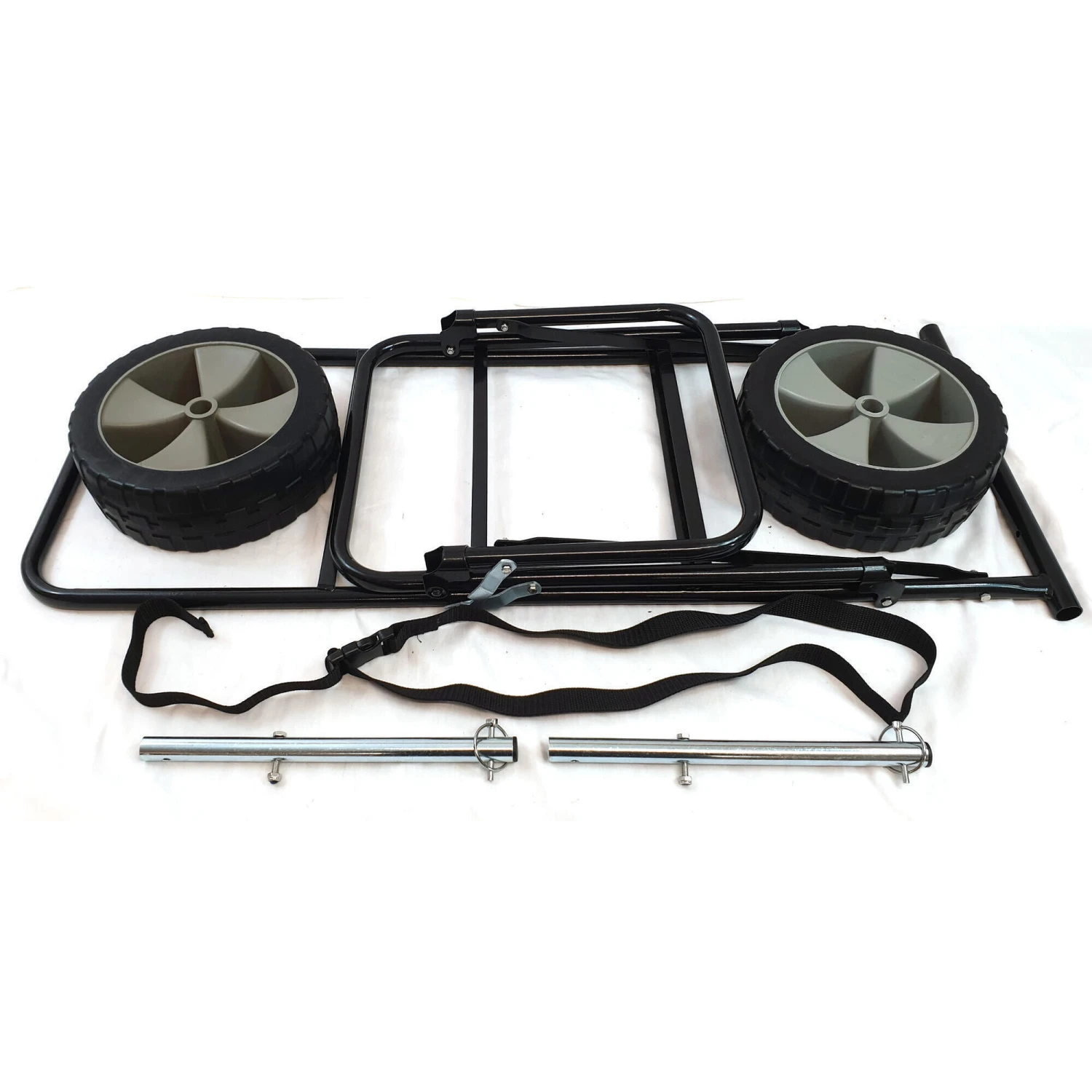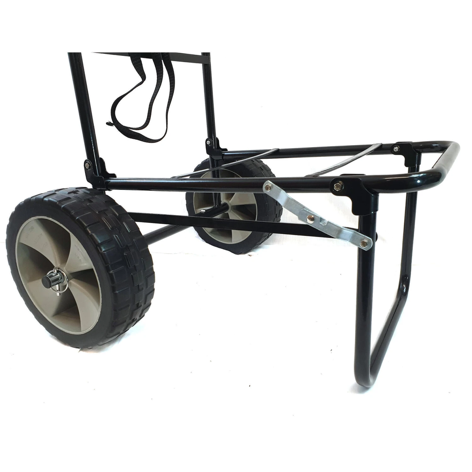 This trolley has large 10″ diameter puncture proof pneumatic tyres which never need to be inflated and are ideal for use hard or soft ground from hard paths to sandy beaches