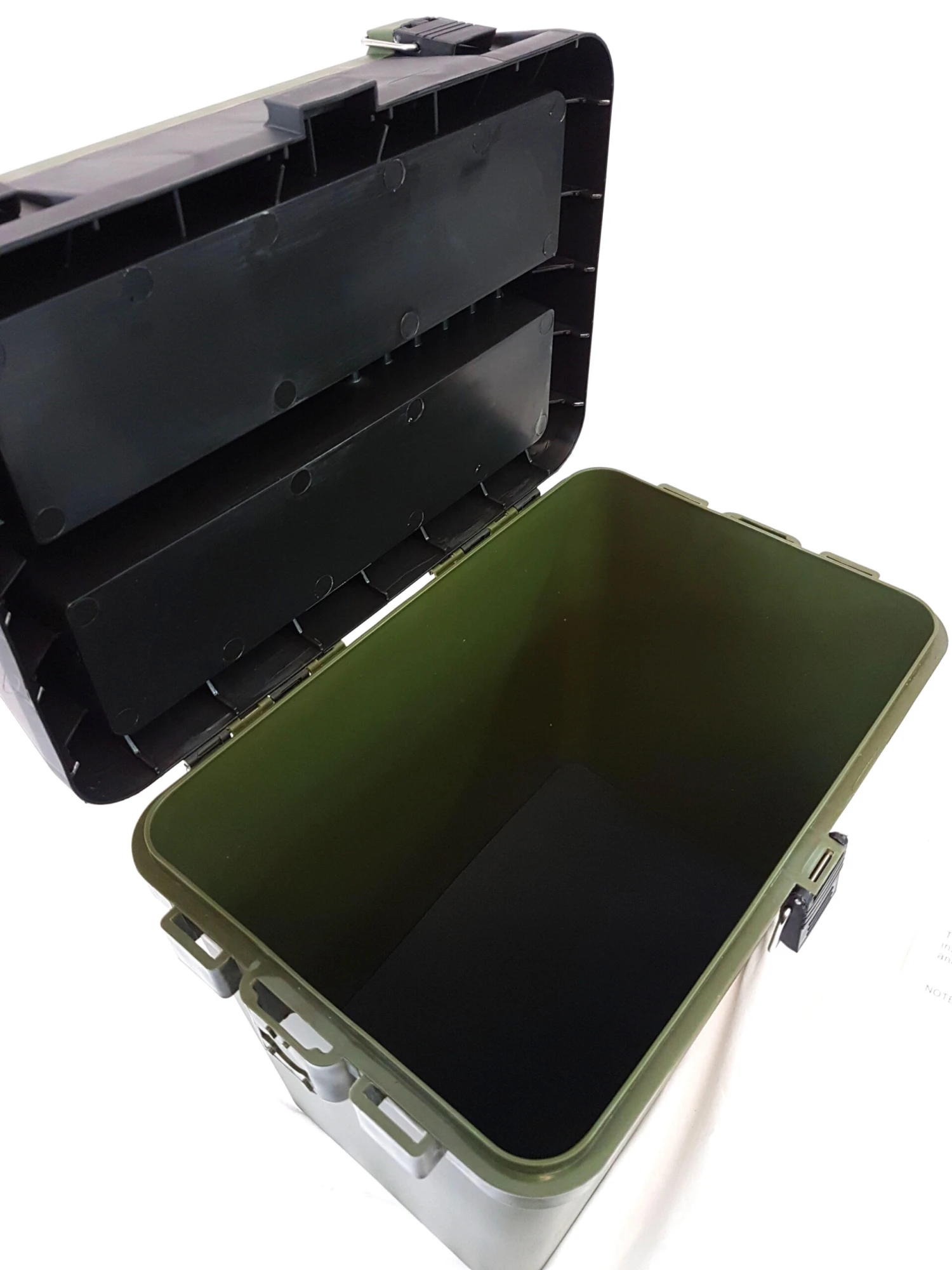 This seat and tackle box is great for any type of fishing it can be used on a boat ,beach or riverbank, The box is strong enough to take up to 20 stone in weight. but is light and easily transportable great for the roaming angler,