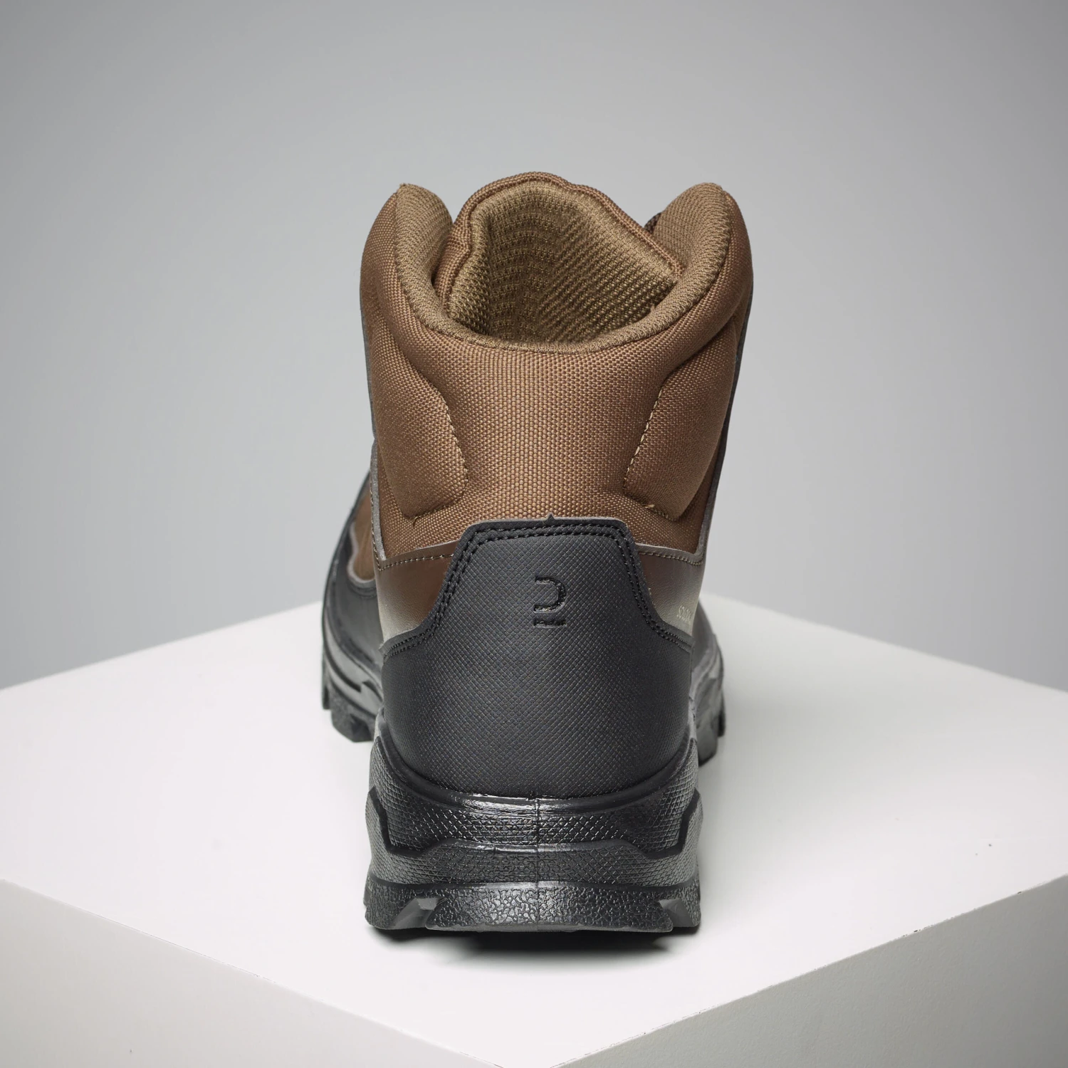 Breathable High-Fitting Leather Hunting Boots Crosshunt 100 D Brown