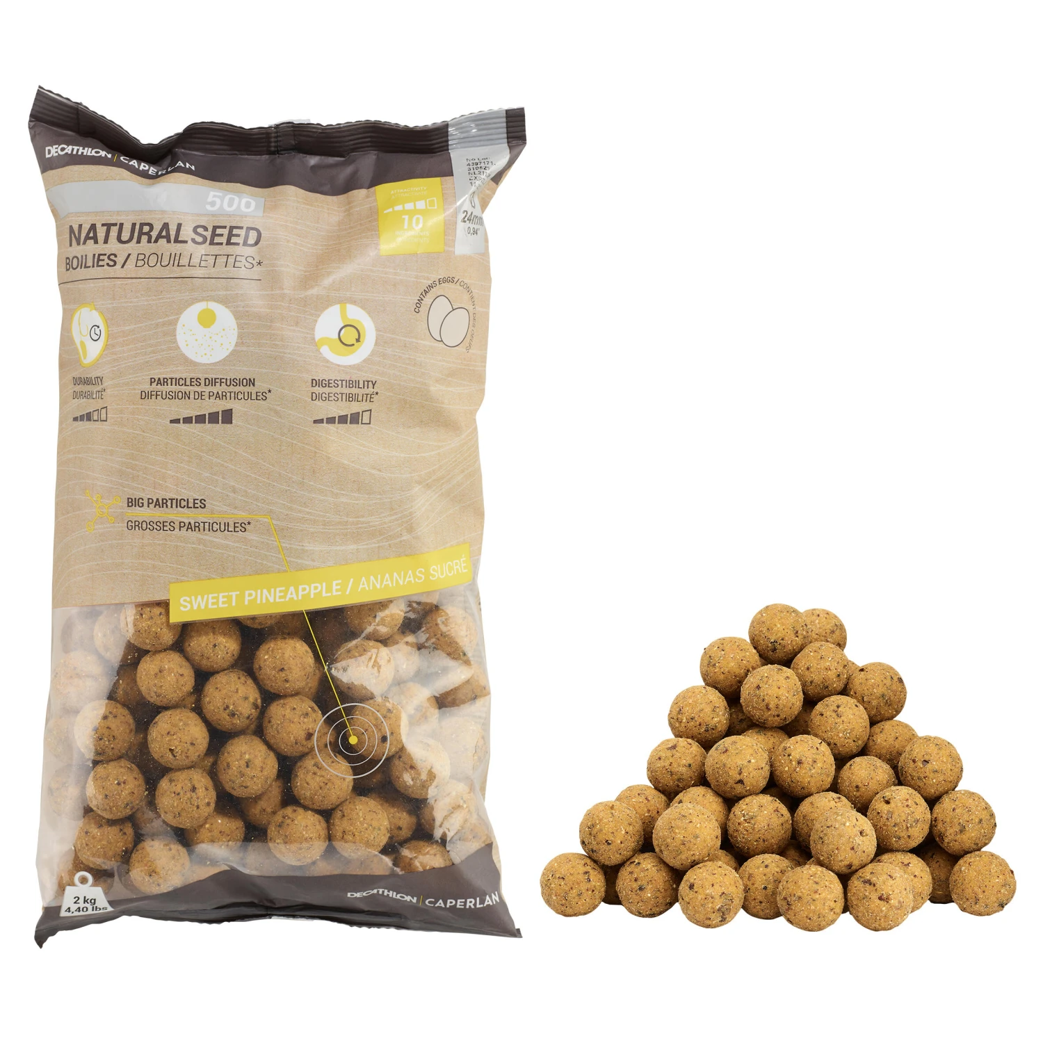 The composition of the boilie has been optimised in order to obtain a judicious balance between dissolution, attractiveness, resistance to unwanted fish and strength on the line. NaturalSeed boilies have also been designed to be cast with a boilie launcher.