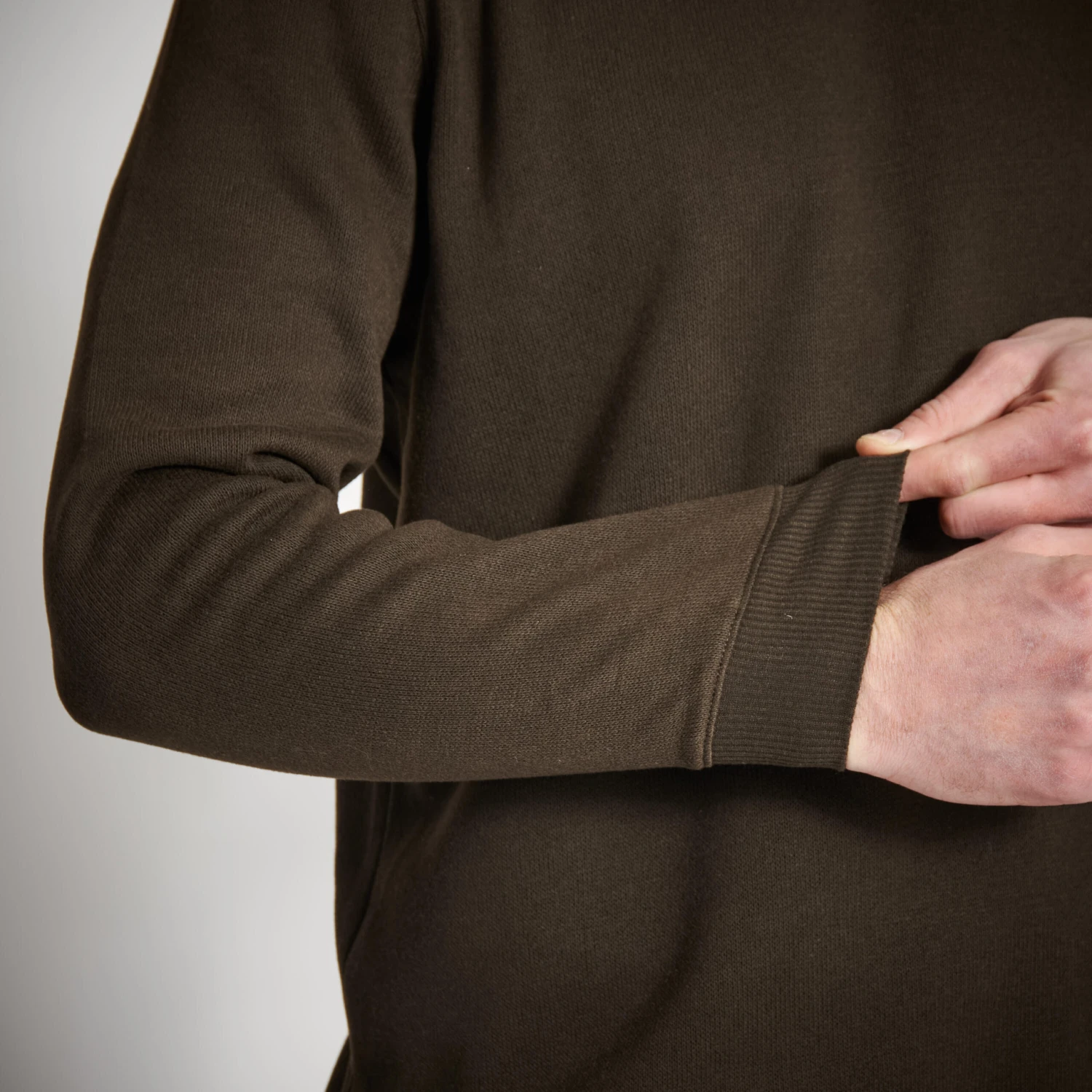 To make sure that you can hunt in comfort when the temperature drops in autumn and early winter, our designers have developed this pullover to protect you from the cold in the simplest way possible: a discreet design round neck pullover with elasticated cuffs to keep out the cold. Brushed polyester material on the inside for softness and warmth. The material will resist wild vegetation and repeated washing.