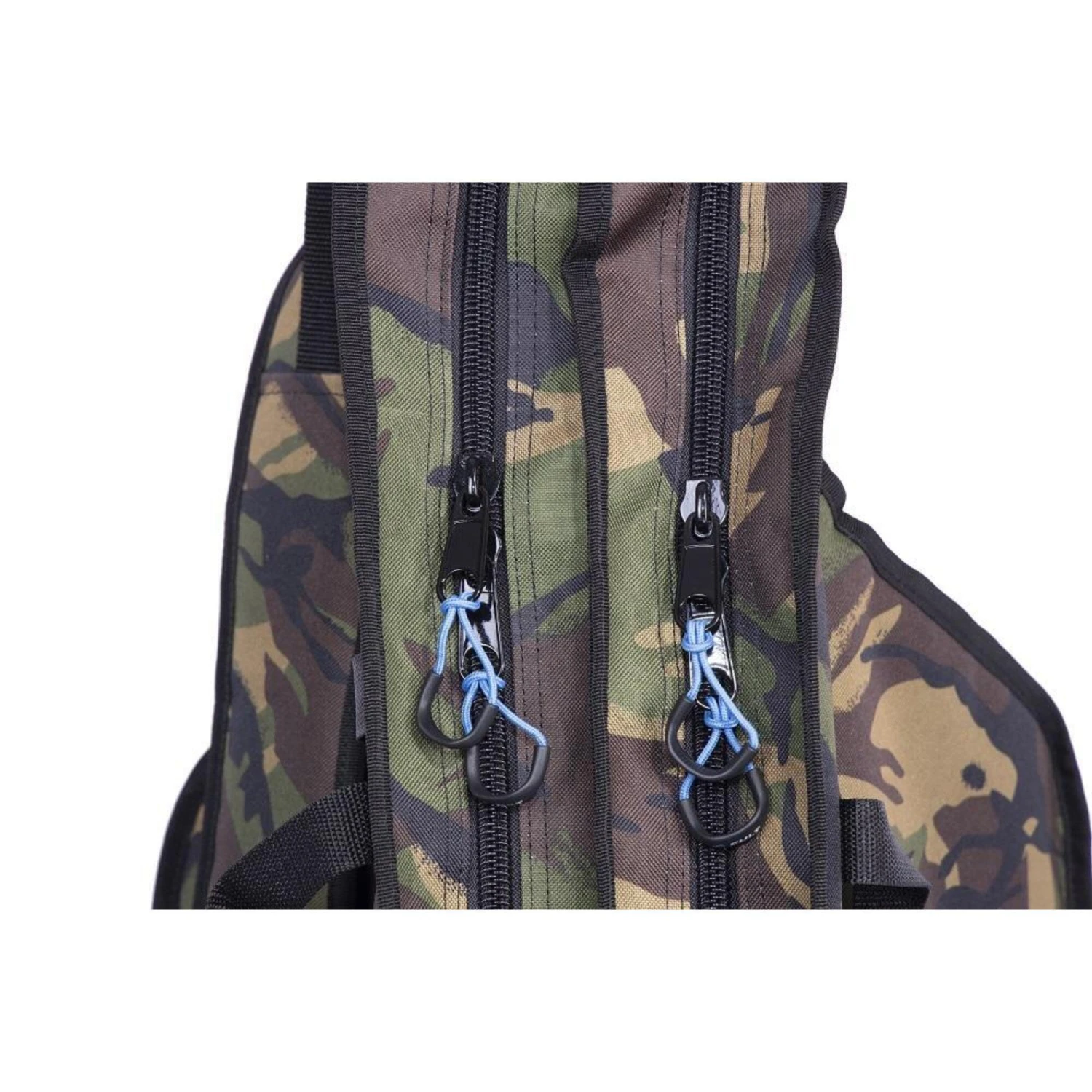 Our standard rod sleeves are the perfect rod protection. Unlike most other two/three rod sleeves, our version offers separate compartments with individual zip sections for each rod. This ensures all rods are kept separate during transportation, however still kept together in a compact sleeve. It also provides extremely easy access when on the bank. The padded compartments house the biggest of big pit reels. External pockets accommodate landing nets, retainers and bank sticks. In our Cult 600D Camo fabric, they have been ergonomically designed to specifically house 50mm butt rings and the largest of big pit reels.