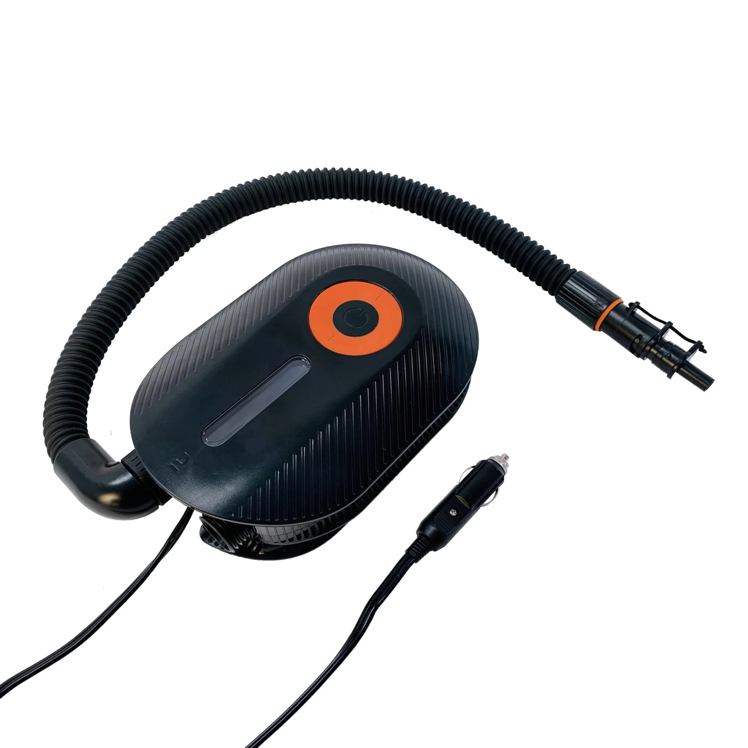 Our team of enthusiasts developed this electric pump to inflate up to 20 PSI using your cigarette lighter.This electric pump connects to the 12 V socket on your vehicle with its ENGINE RUNNING (13.8 V-10A). Inflate your stand up paddle, kayak, boat, tent, etc. up to 20 PSI (1.37 Bar).