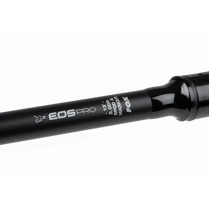 Fox EOS Pro 13ft SPOD/MARKER Lightweight low resin carbon construction SLIK Air guides Anti-frap tip guide High quality 18mm reel seat Understated cosmetics Matt black finish Full shrink wrap handle Available in the following lengths and test curves: 12′ SPOD/MARKER, 13ft SPOD/MARKER