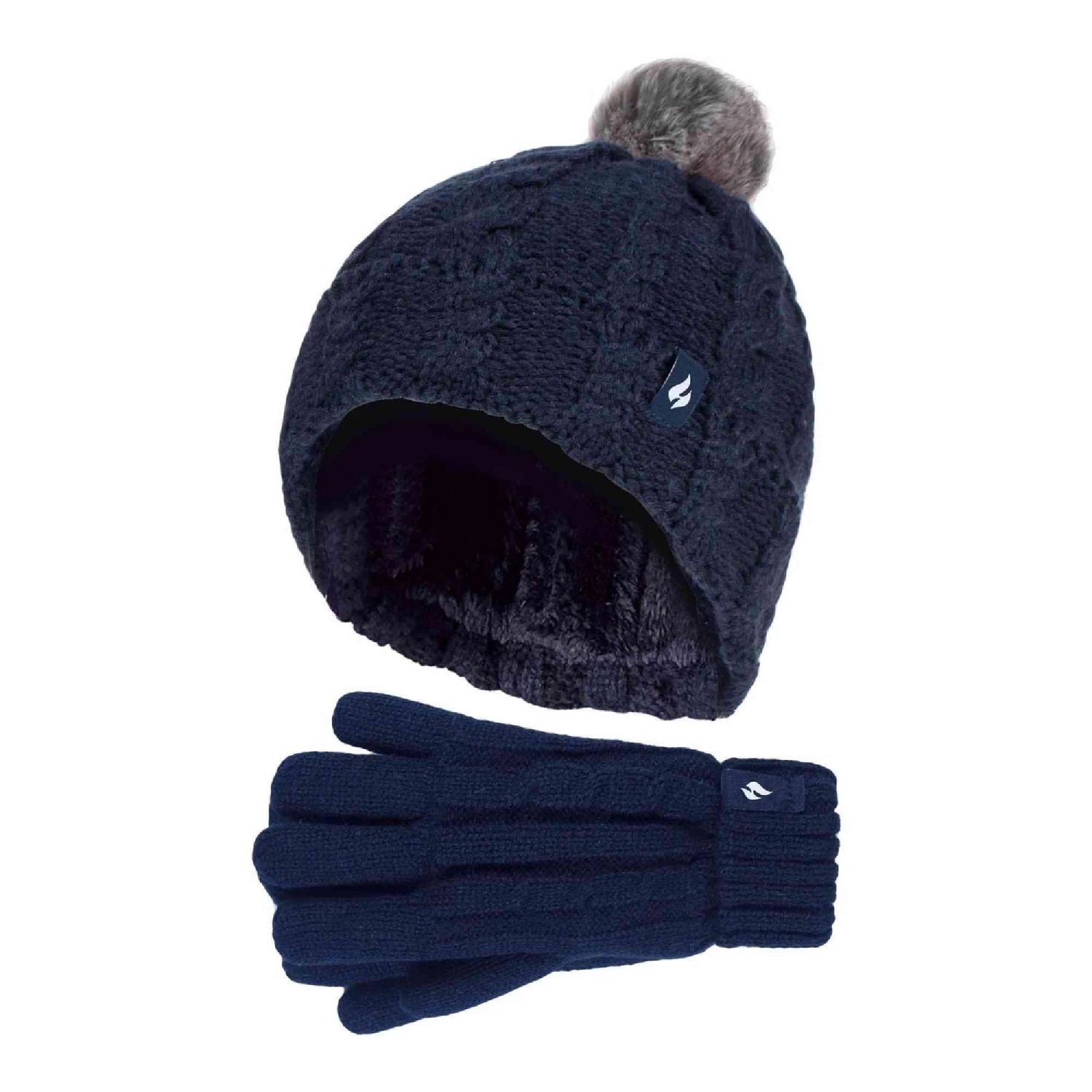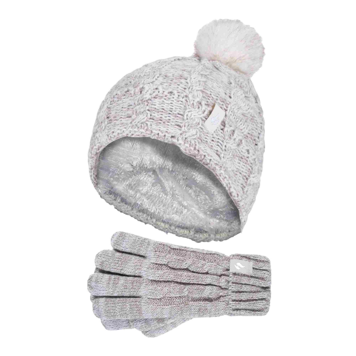 Heat Holders Girls Glacier Peak Faux Fur Pom Pom Hat and Gloves