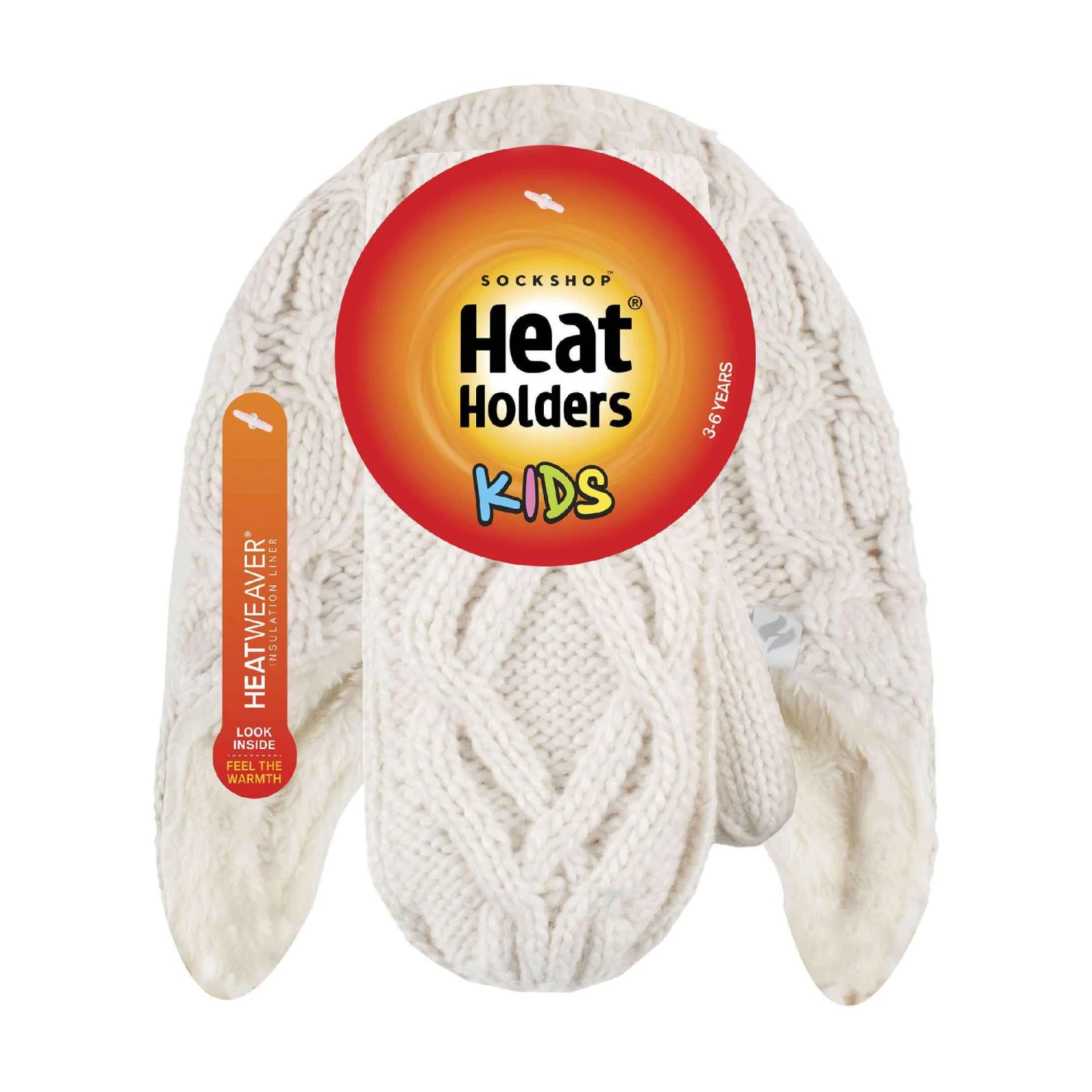 Introducing these cable cosy knitted-like design on hats and mittens for girls! Heat Holders use thermal yarn provides high performance insulation against cold. They are available in ages 3-6 years.