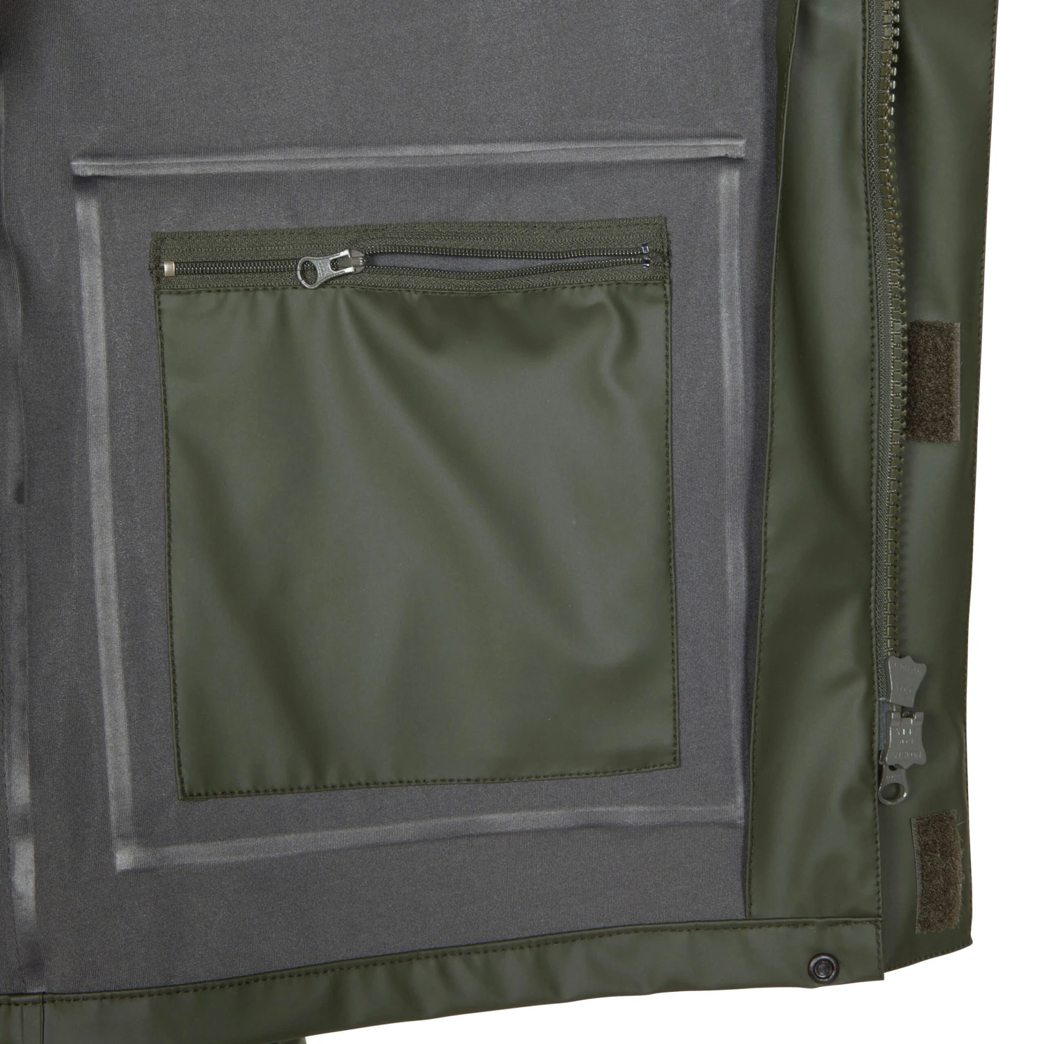 Designed for lowland bird-watching in wet weather.Hard wearing and comfortable jacket. It provides three hours of protection against a rain shower. Practical with its five pockets including one bag and one inside zipped pocket.