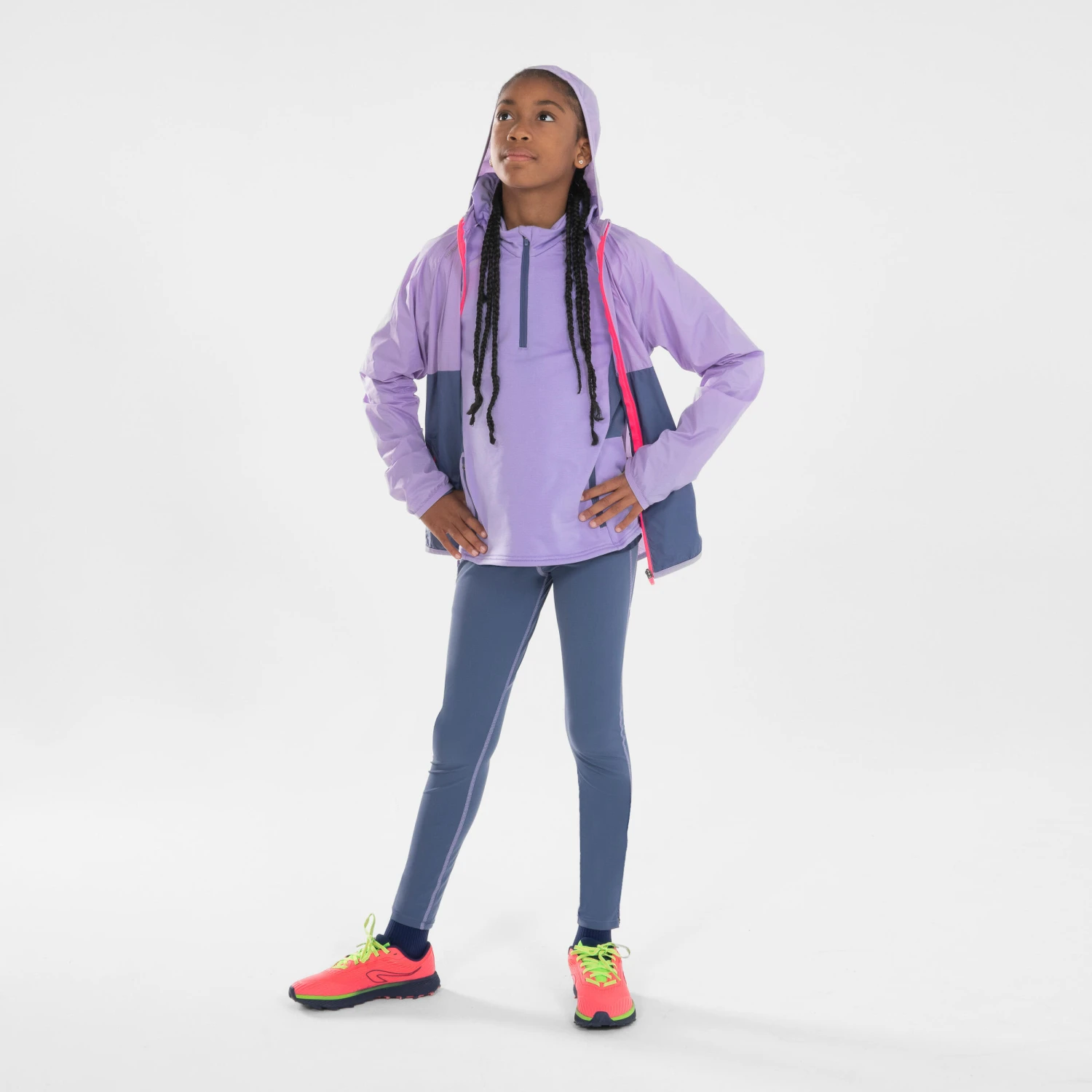 Designed by athletics fans, this windproof jacket will be your child’s perfect mid-season partner. Wind and rain will be no obstacle to running!Your kids love running far too much to be stopped by a few drops of rain or a gust of wind – this lightweight and windproof jacket with hood will protect them during their training sessions.