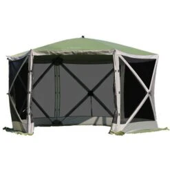 This is the original and still the best quick erect gazebo/shelter on the market. It is designed to be put up by one person in less than one minute. There is nothing to assemble or put together, nothing to inflate, tension or adjust.