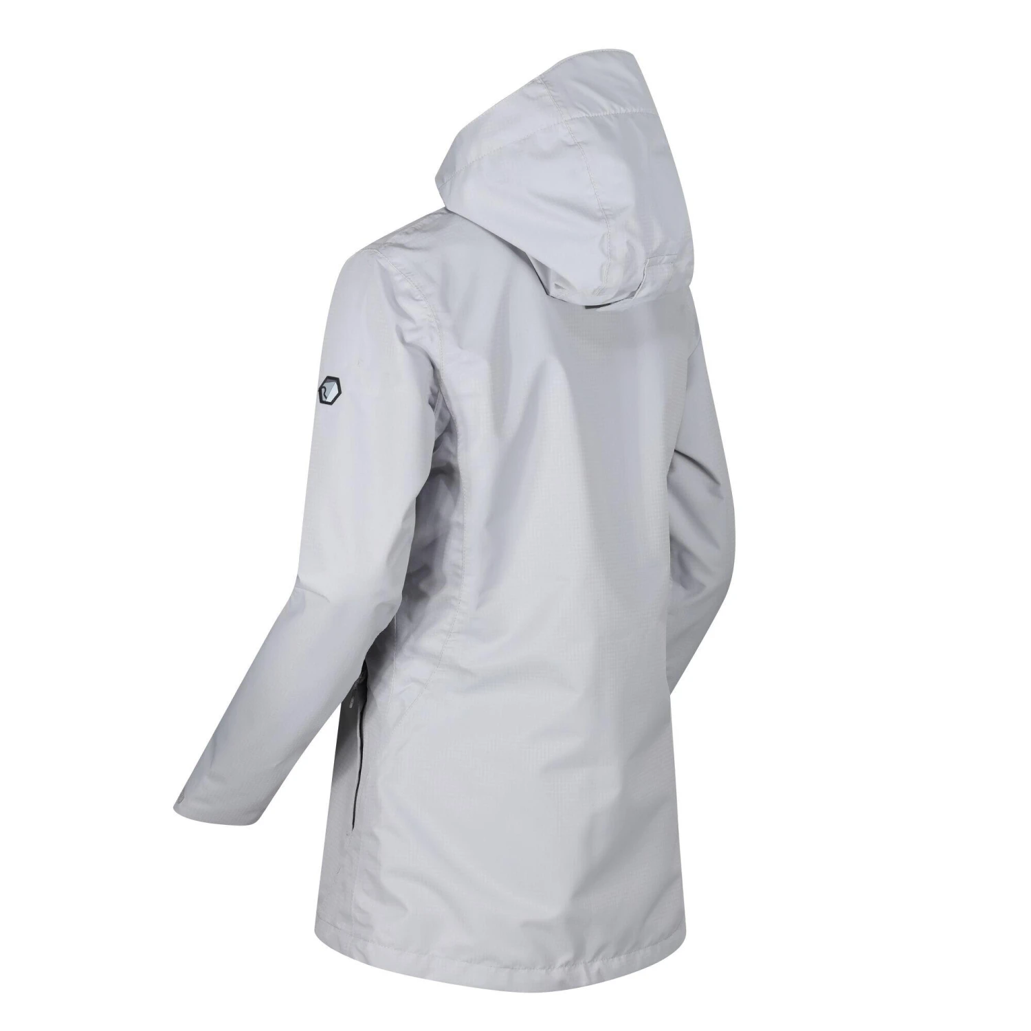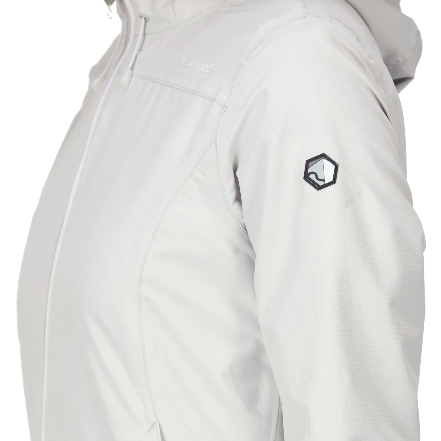 The women’s Hamara III jacket from Regatta- a lightweight, lightly textured Isotex 5,000 fabric with a DWR (Durable Water Repellent) finish and sealed seams providing waterproof protection that breathes. The peaked hood with 2-way adjustors provides optimal visibility while the inner stormflap and chin guard keep water out.