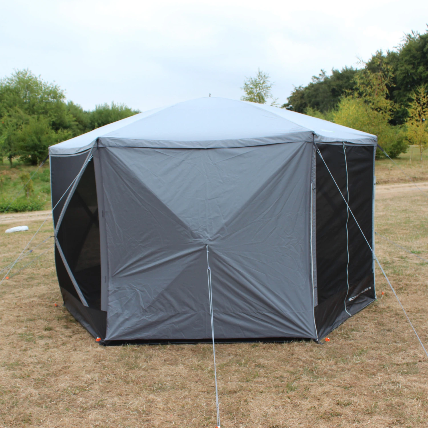 Introducing the premium Screenhouse 4 DLX freestanding gazebo and utility shelter, pitched quite literally in seconds as a result of our innovative fibreglass pop up system; Complete with Zip-up Side Panels this gazebo provides simply the most FLEXIBLE utility space to complement your camping, caravanning or motorhoming setup, specifically designed with cooking, relaxing, storage, pets, shelter, dining and affordability in mind! • 240HD high density all weather fabric