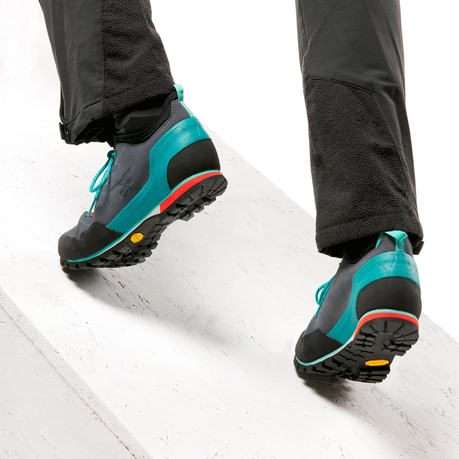 Technical shoes, for walking and climbing in the high mountains! Approved in alpine conditions by our mountain guide partners.Stable on all terrains thanks to its rigid sole construction and VIBRAM® sole with climbing zone. They also have a waterproof membrane. Specifically designed for women.