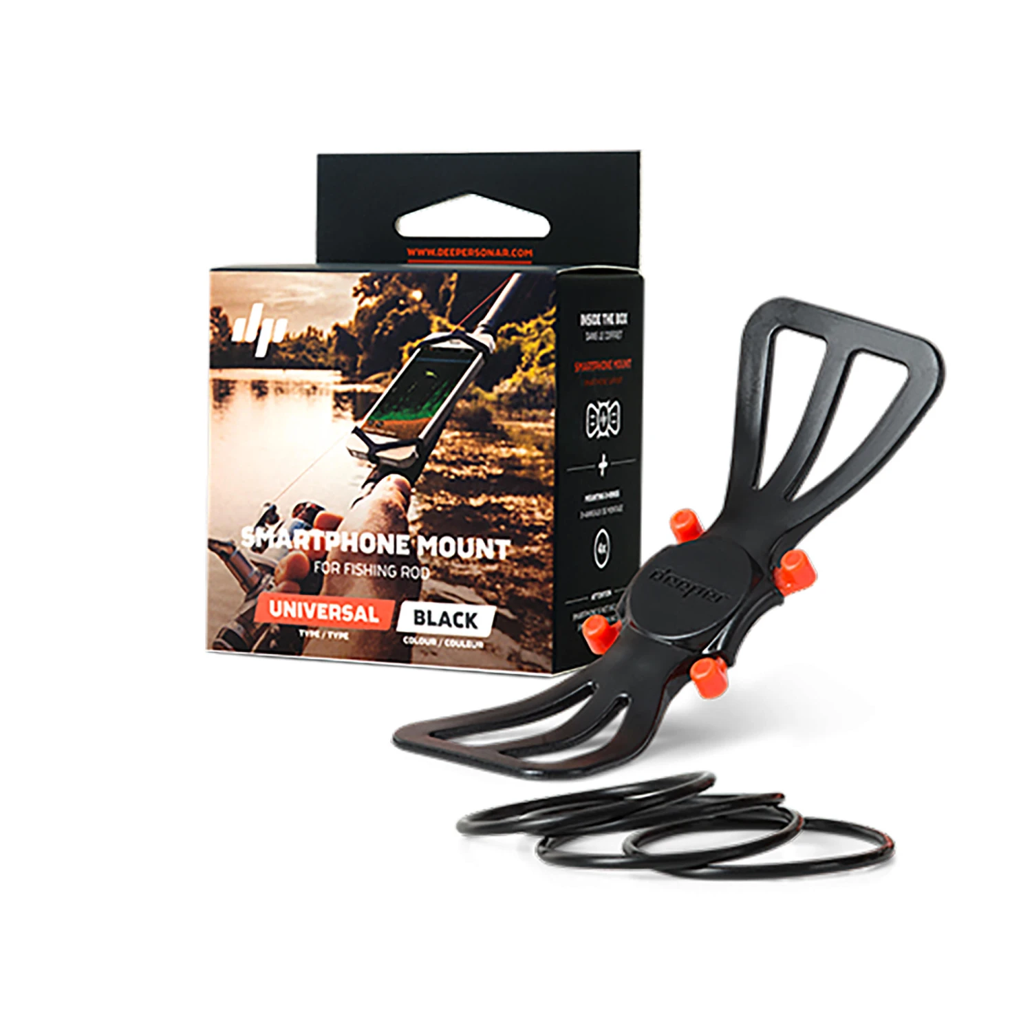 The Deeper smartphone mount efficiently secures a smartphone to a fishing rod, allowing for quick and easy surveying.The Deeper has revolutionised fishing by offering quick and easy surveying from the shore. The Deeper Smartphone Mount makes surveying easier, whatever the conditions.
