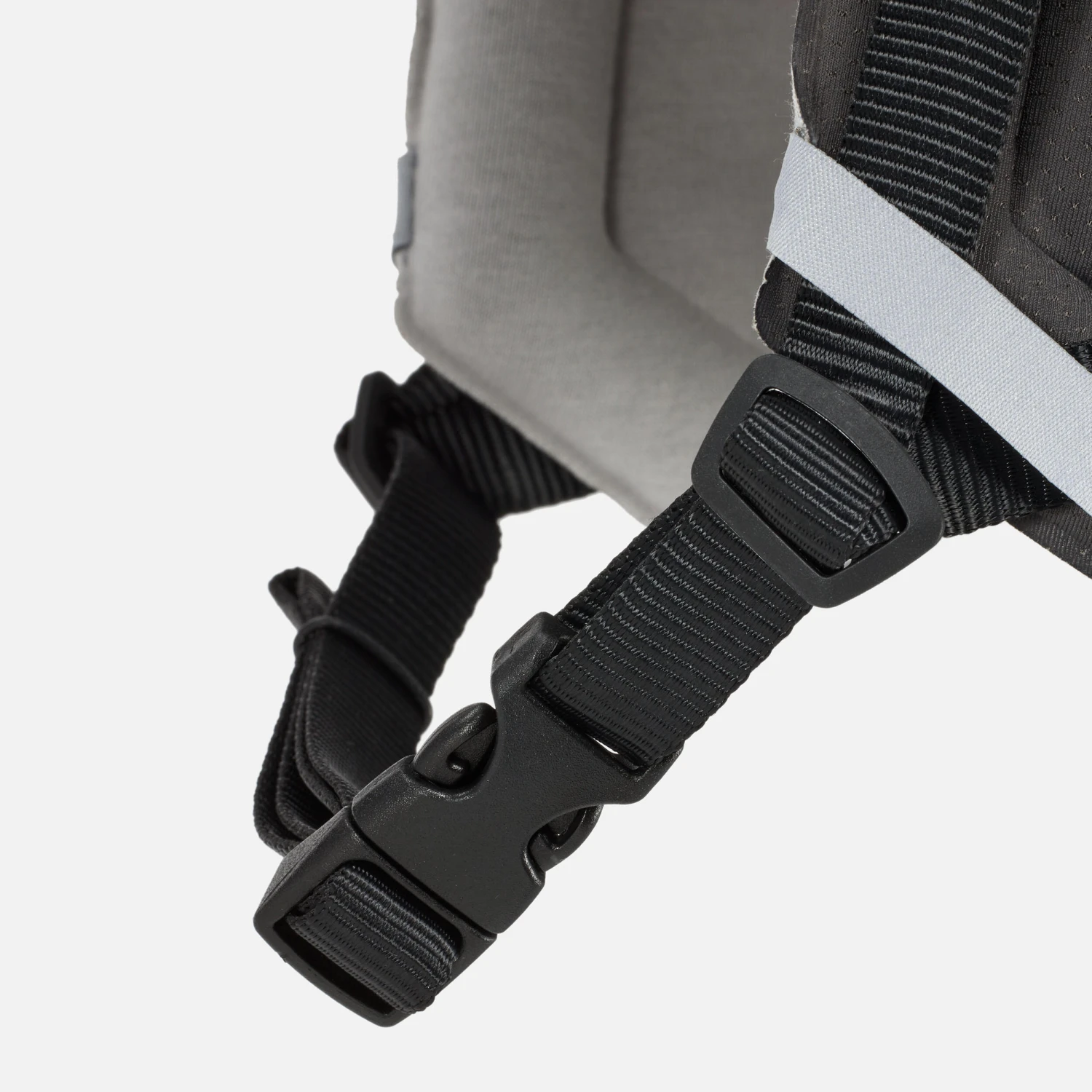 The light grey hard shell, which encloses the helmet, is made of polycarbonate and increases impact protection.